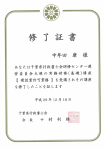 建設業許可研修修了証書